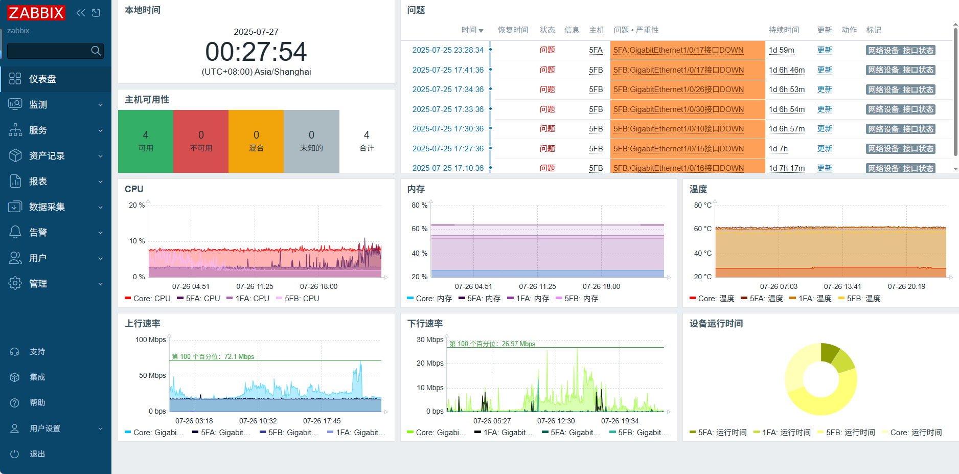 网络监控 熟悉通过zabbix平台监控网络设备状态、上下行网络流量